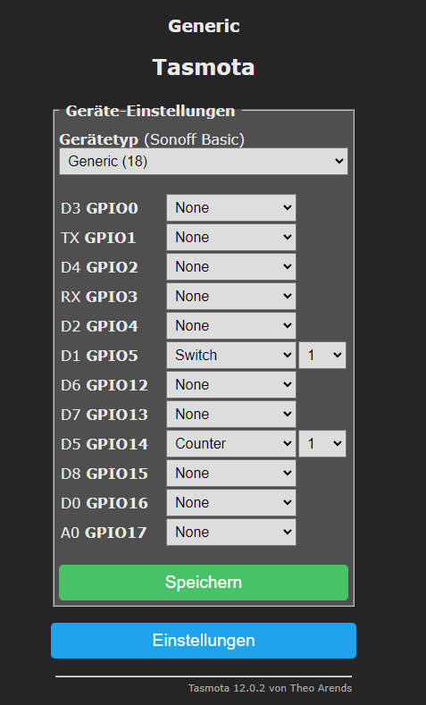 Der Reed Kontakt wird bei jedem „0“ der dritten Stelle nach dem Komma ausgelöst. Das heißt der Zähler im Tasmota zählt 0,01 m³. Ergo muss zum Beispiel ein Zählerwert von 123,45 m³ in Tasmota als 12345 laufen.