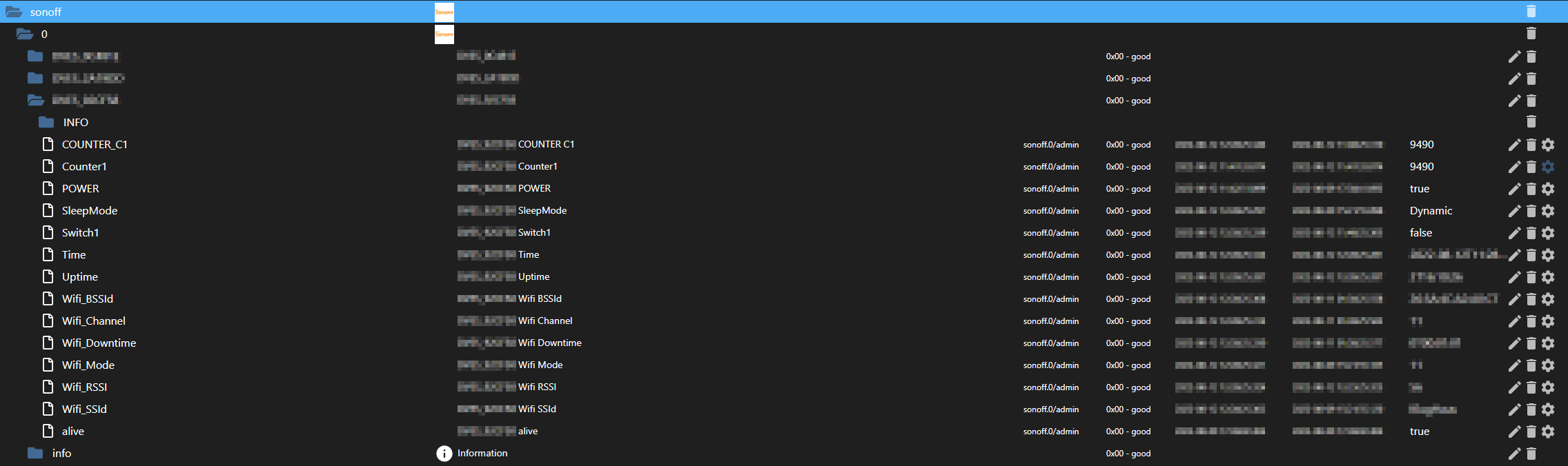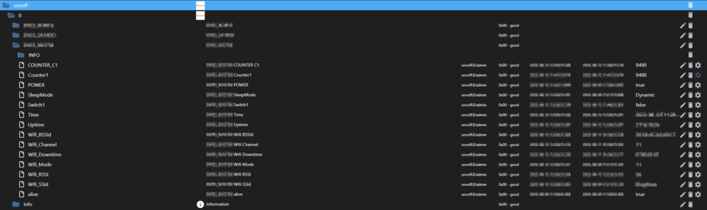 Der Wert läuft dann über die selbsterklärenden MQTT Einstellungen über den Sonoff Adapter in ioBroker: