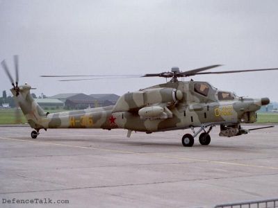 Der Erstflug war am 10. November 1982 in der damaligen UdSSR. Er soll den in die Jahre gekommenen Mi-24 ersetzen und steht dabei in Konkurrenz zum einsitzigen Kamow Ka-50. Zurzeit werden beide parallel in kleiner Stückzahl gebaut, wobei gerade der Ka-50 im Ausland vermarktet wird. Aufgrund fehlender Mittel blieb aber bis jetzt der in Afghanistan erprobte Mi-24 der wichtigste Kampfhubschrauber der russischen Streitkräfte.